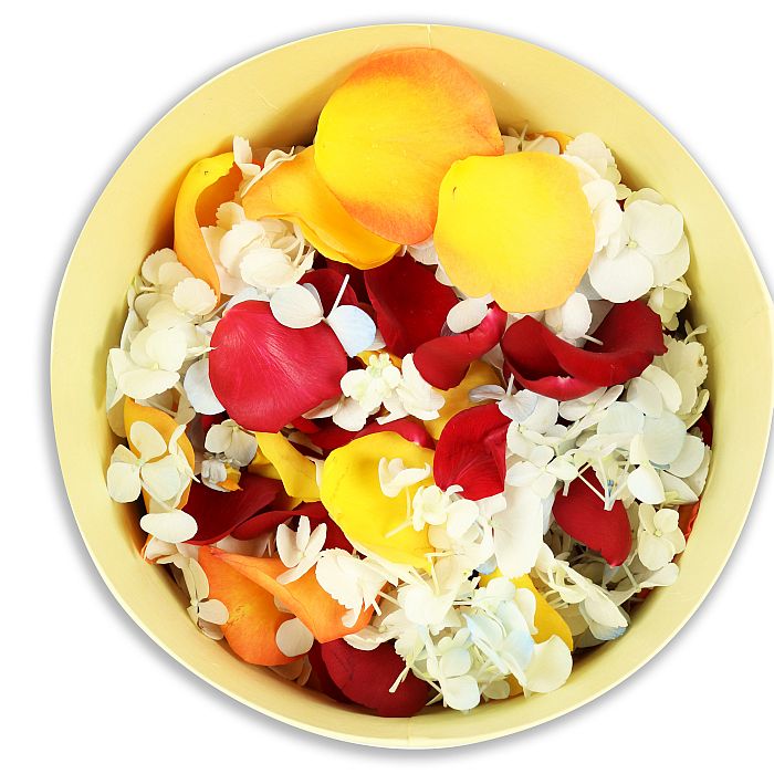 Refresh your space with the vibrancy of our seasonal bouquet, expertly crafted with passion and precision. This arrangement combines the delicate beauty of Hydrangea petals, Rose petals, and Chrysanthemum petals to create a harmonious blend of colors and textures that stands out for every special occasion.