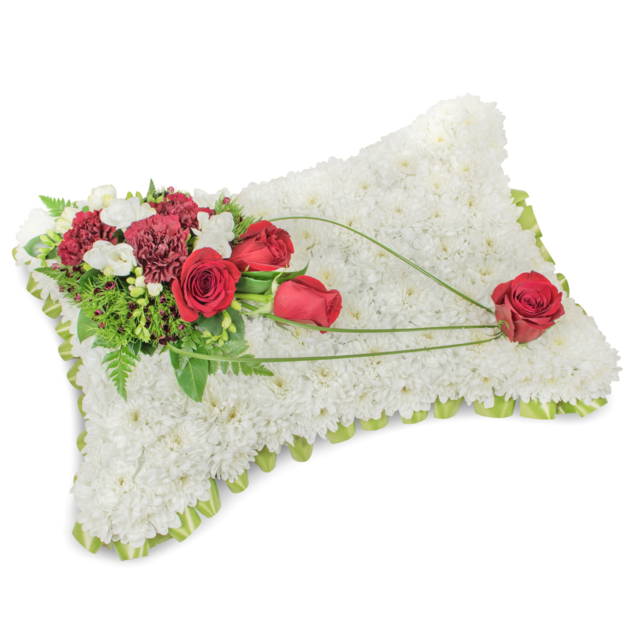 Experience the perfect blend of elegance and meaningful artistry in our Hand-Selected Sympathy Bouquet. Crafted with care, this arrangement features a harmonious mix of white chrysanthemums, red roses, white freesias, and dark red carnations, delicately accented with dianthus and bear grass. Every flower is meticulously chosen for its vibrant color and peak freshness, ensuring your heartfelt message is expressed with sophistication.
